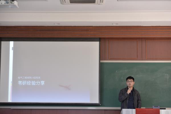 最后考研到重庆大学的邢来同学和考研到清华大学的邬超同学介绍了自己考研的经过,并指出对于电气学子来说数学和电路原理的拉分科目,还要坚持不懈日复一日的学习。