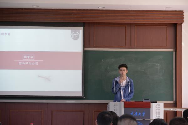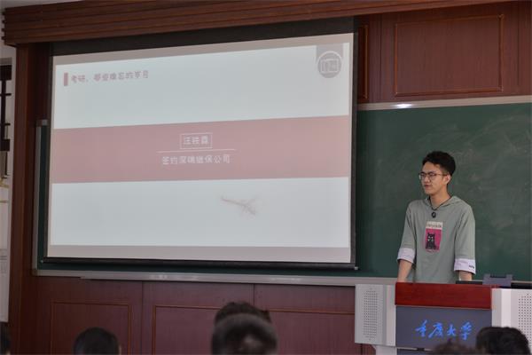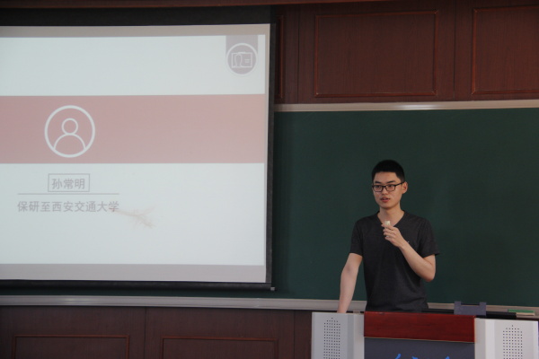 首先是保研重庆大学的王汉卿同学进行发言,他提醒有意向保研的同学要在暑假及时复习专业课以应付复试,并且要及时关注学科前沿问题并且联系实际进行思考。除此之外要及时联系导师并且制作简历。