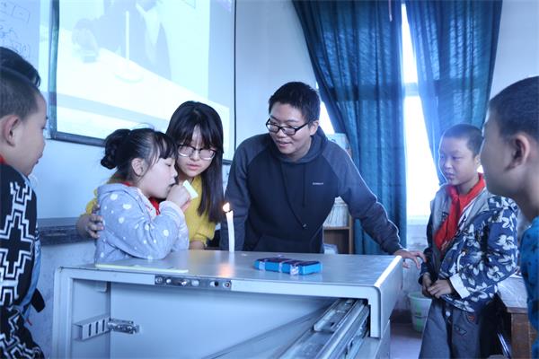 随后,志愿者们又给同学们展示了“旋转的纸蛇,吹不灭的蜡烛等实验,有趣的实验现象让同学们很是兴奋。志愿者们细致讲解了气压、流体的有关知识,生动地向同学们解释了生活中的风是如何形成的,热气球又是为什么升上天空。“我来”、“我要做”,同学们都踊跃地举手亲自做实验,志愿者们都一一指导陪同他们完成了实验,志愿者和孩子们的脸上洋溢着欣喜的笑容。最后,志愿者们作了知识总结,孩子们也对下一节课的到来充满了期待。