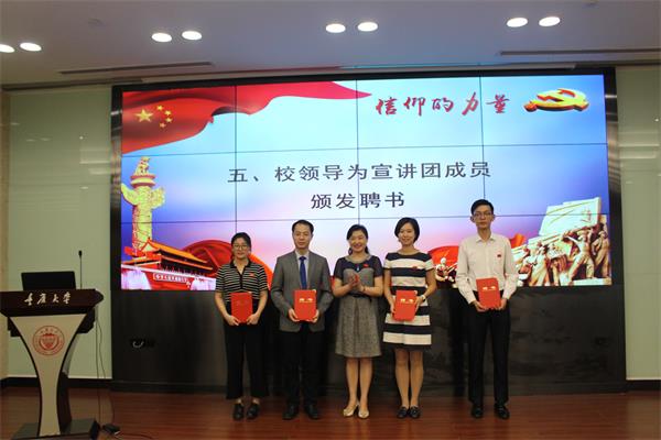最后校领导为宣讲团成员颁发聘书并将宣讲团团旗传到了唐亮书记手中,本次宣讲会也在全场师生《歌唱祖国》的合唱声中圆满落幕。
