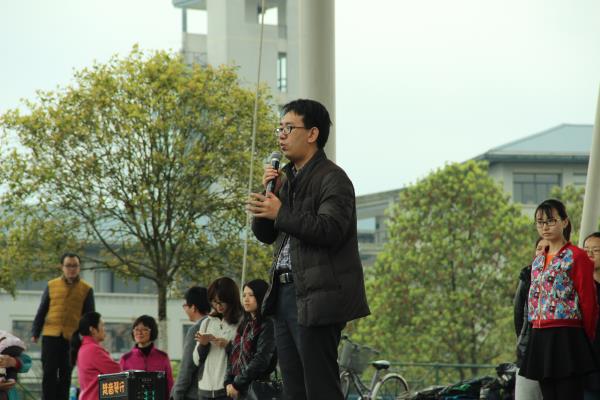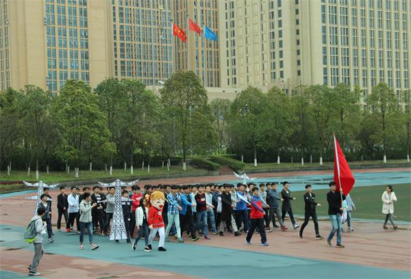 风采。为了达到这一目标,同学们在操场上一遍又一遍地训练,一次又一次地矫正,一轮又一轮地磨合。在学生干部以及辅导员的陪同督促下,同学们的配合愈加熟练。在3月30日中午方阵训练间隙,院长助理孟繁琦老师也前来进行指导慰问,并与大家进行谈话,他赞扬了电气学子在方阵训练时不怕苦不怕累的精神,并殷切希望大家能够保持这种热情,再接再厉,在开幕式现场展现出最完美的自己。
