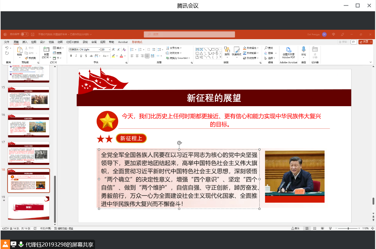 随后,代锋钰同志分享第五小组关于学习伟大建党精神和延安精神的体会,通过对两大精神的深刻解释,加深了各位参会同志对两大精神的领悟,同时也坚定了各位同志对两大精神的实践理想。