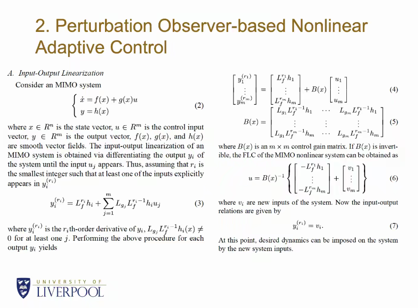 随后,蒋教授重点介绍了基于摄动观测器的非线性自适应控制系统。基于扰动估计和补偿方法的基本思想,该系统可以估计时变扰动,包括参数不确定性、建模误差和外部扰动,并通过它来提高反馈线性化控制和基于被动控制的鲁棒性。