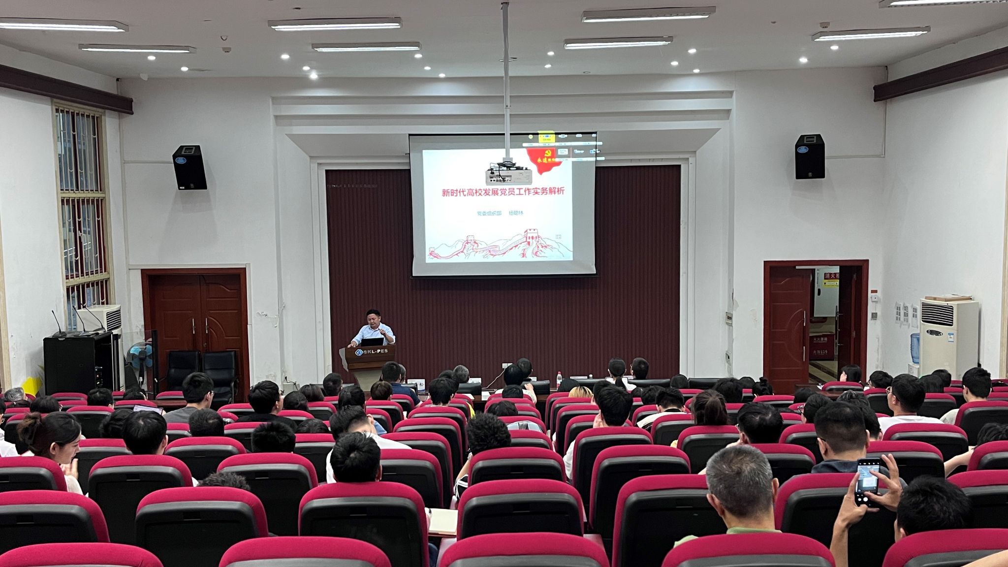 杨聪林以新时代高校发展党员工作实务解析为题,从支部政治功能、发展党员流程及相关注意事项等方面详细介绍发展党员工作实操,并就在确定入党积极分子、发展对象政审等环节中的易错点进行了重点解析。