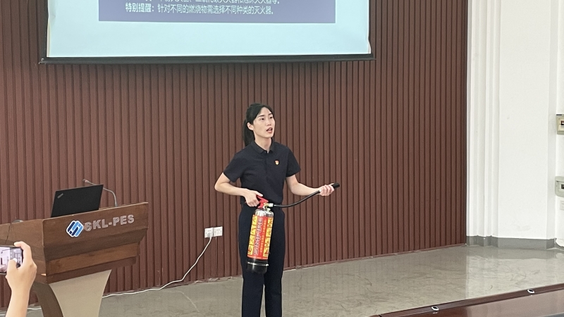 肖雨诗老师进行了主题为《平安就是最大的智慧》安全讲座,向同学们讲述实验室安全注意事项,尤其是电气领域多发的一些安全事故的处理方法。肖雨诗老师还通过实物讲解,向同学们介绍ABC干粉灭火器和二氧化碳灭火器两种灭火器的不同用途以及使用方法,同时拿出六教的结构示意图,邀请四位同学上台绘制出六教的逃生路线。