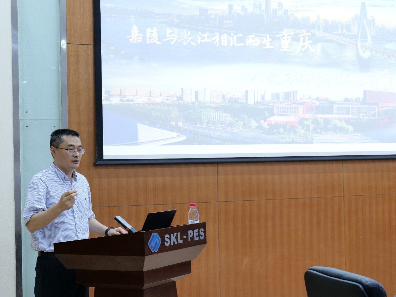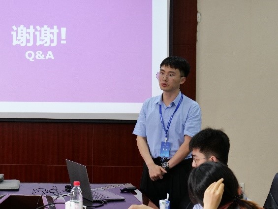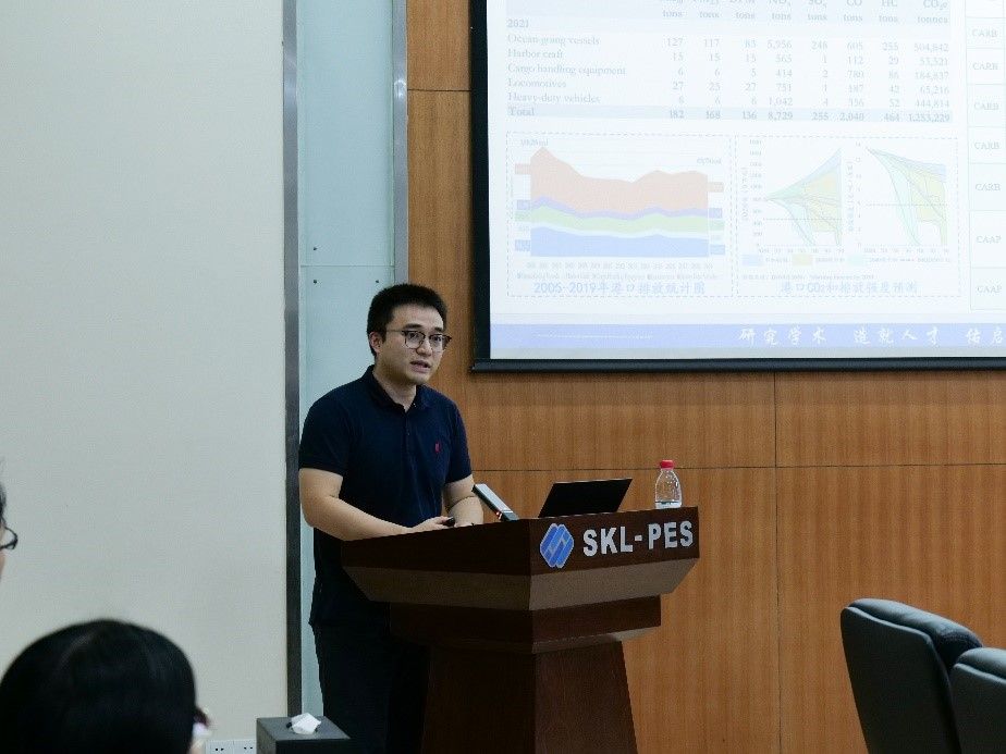 人才专员、电力系统及其自动化系教师代表方斯顿教授做学术报告。方教授就港口综合能源系统做了相关介绍,分享了港口转运汽车调度和能量管理协同优化方法方面的研究,并与参会的青年学者交流了相关看法。