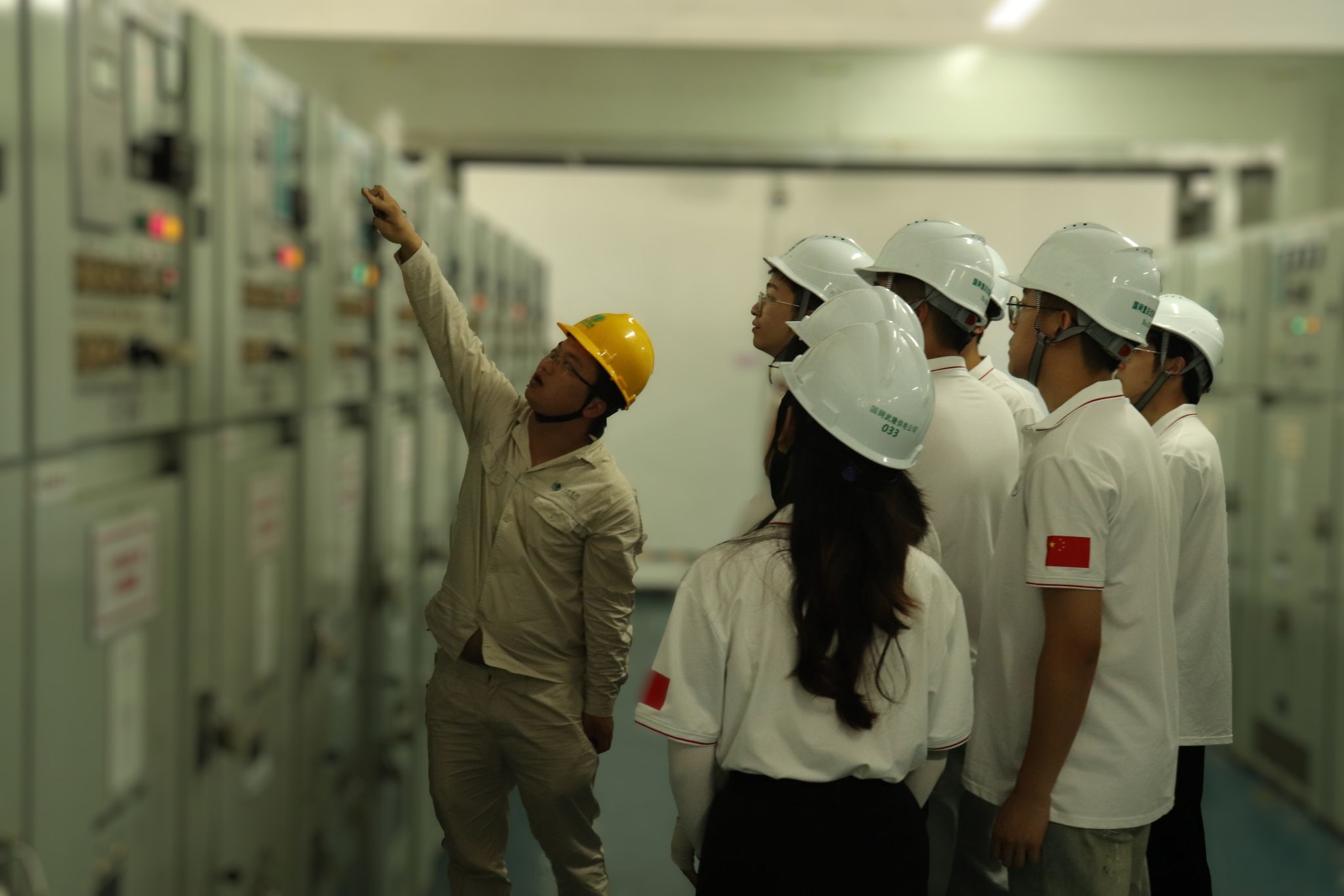 进入变电站前,变电站技术人员肖兵向成员们重点强调参观纪律,在参观期间要时刻佩戴好安全帽,不得随意私自触碰设备,守住安全问题这一红线。