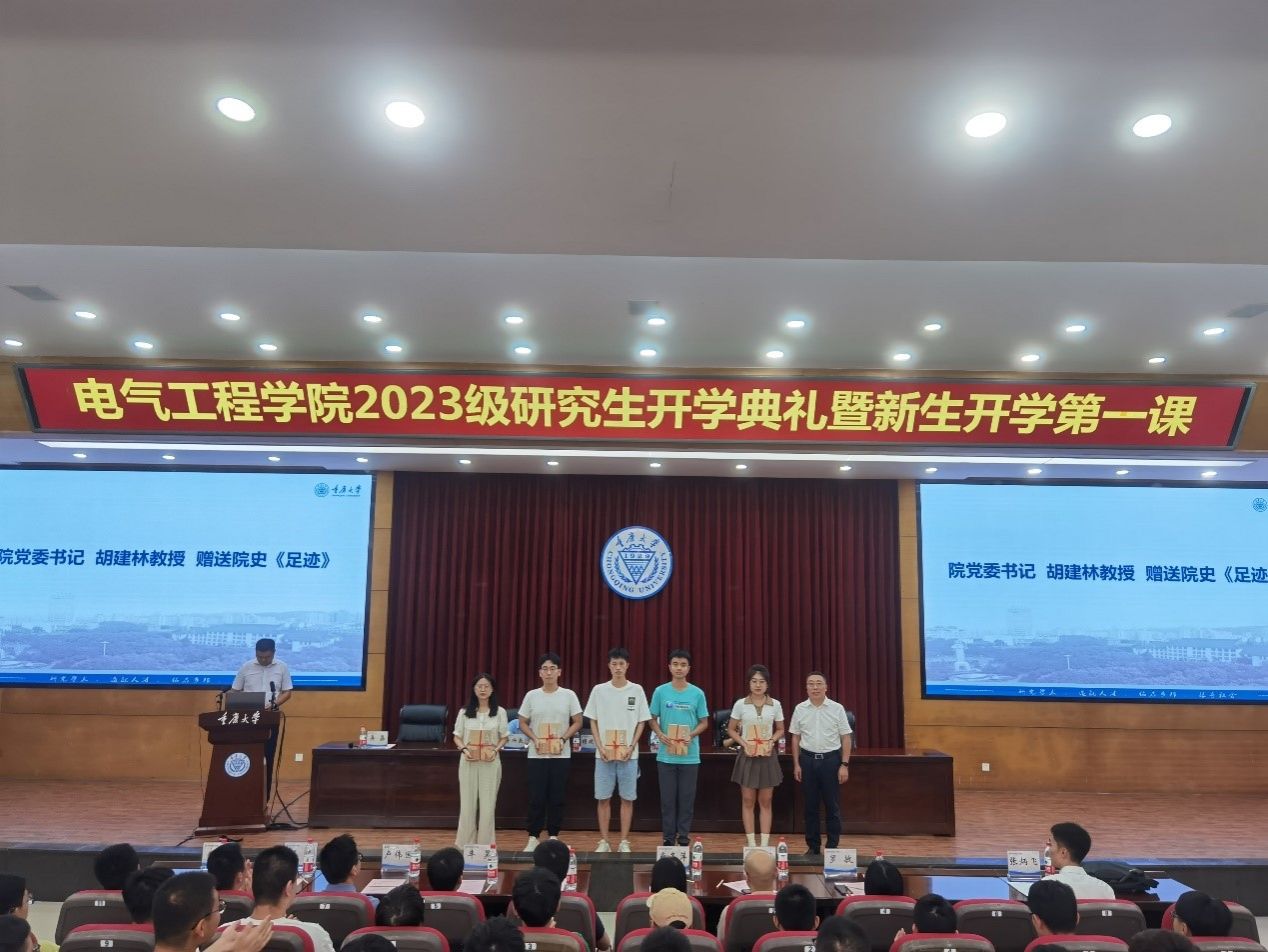 胡建林为新生代表赠送院史《足迹》,希望大家继续传承重大电气精神,肩负历史使命,立大志、明大德、成大才、担大任,努力成为堪当民族复兴重任的时代新人,把百家乐规则