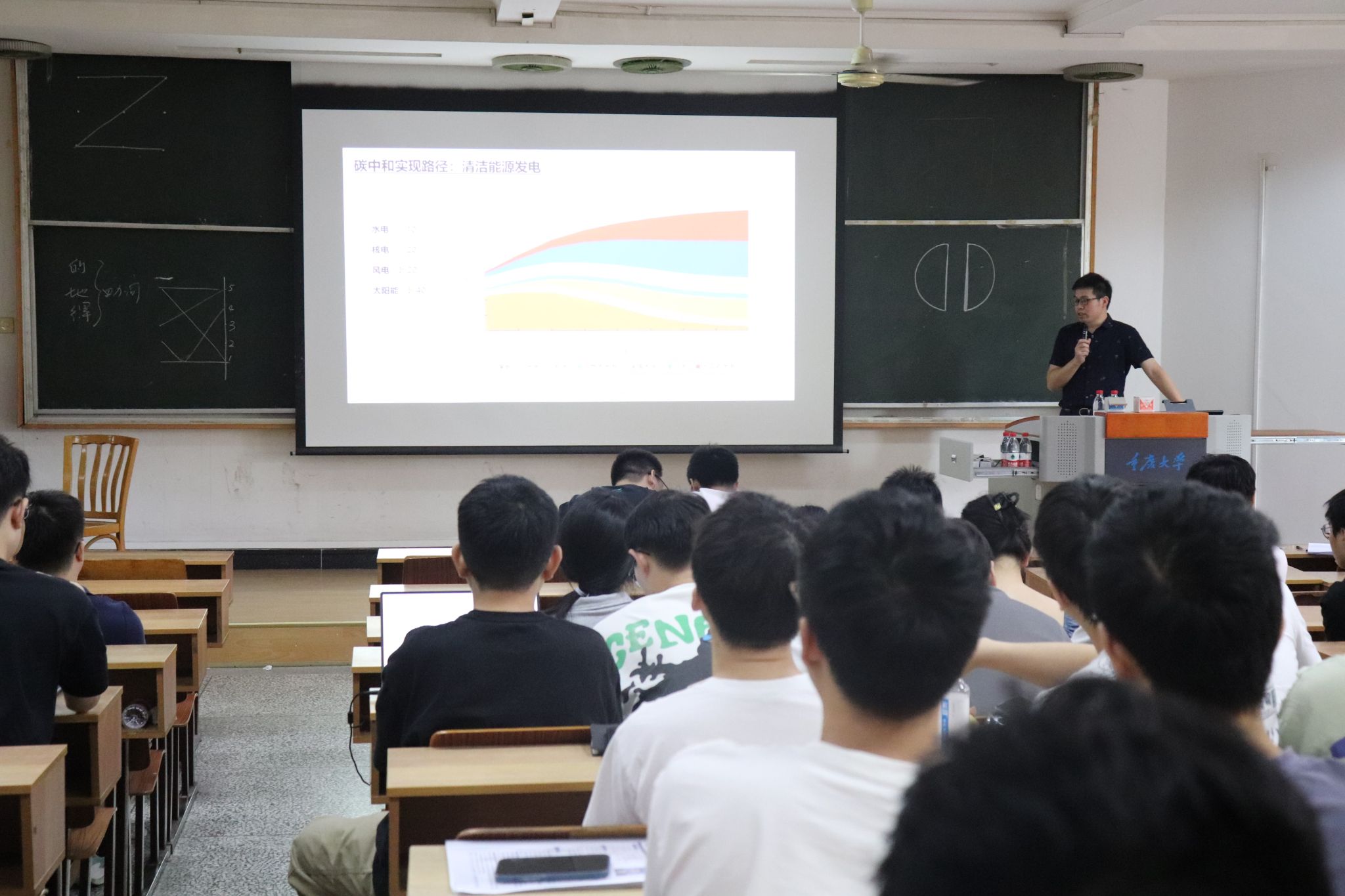 在A区理科楼225教室开展了“新能源行业发展现状及人才需求解析”主题讲座,本次讲座由姚明老师主讲,200余名百家乐规则