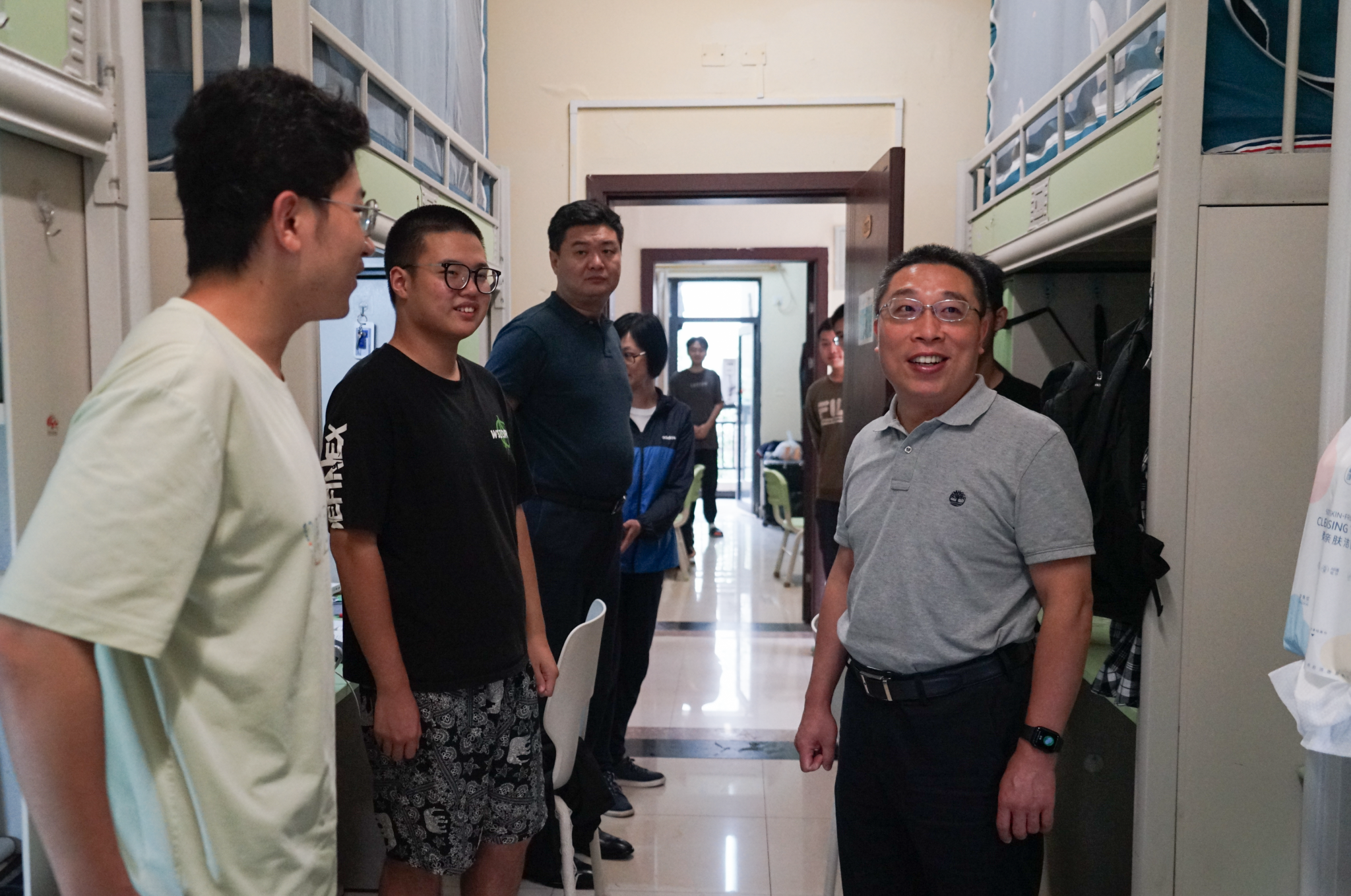 胡建林一行走访了2022级学生宿舍,看望2022级全体同学们。胡书记亲切询问了分流之后同学们的学习、生活、餐饮、住宿、安全等多方面情况,了解大家进院后的适应情况,倾听学生们的反馈,对学生提出的问题现场给予了答复。对环境卫生较好、学风优良的宿舍进行表扬,对存在问题的寝室提出了改进建议。胡建林书记要求全体寝室继续保持良好卫生习惯,建设优秀寝室文化,遵守学校寝室管理规定。