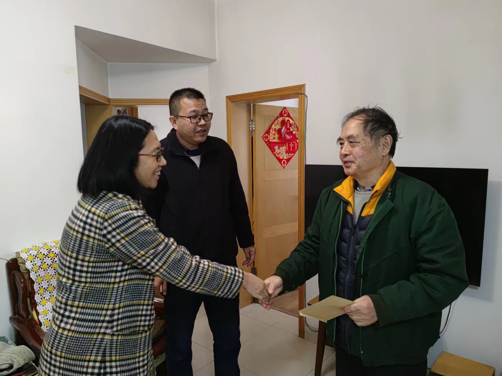 工会组织开展了元旦春节走访慰问工作,陆续看望了36位老党员、离退休教师、生活困难教职工并提前送上了新春祝福。