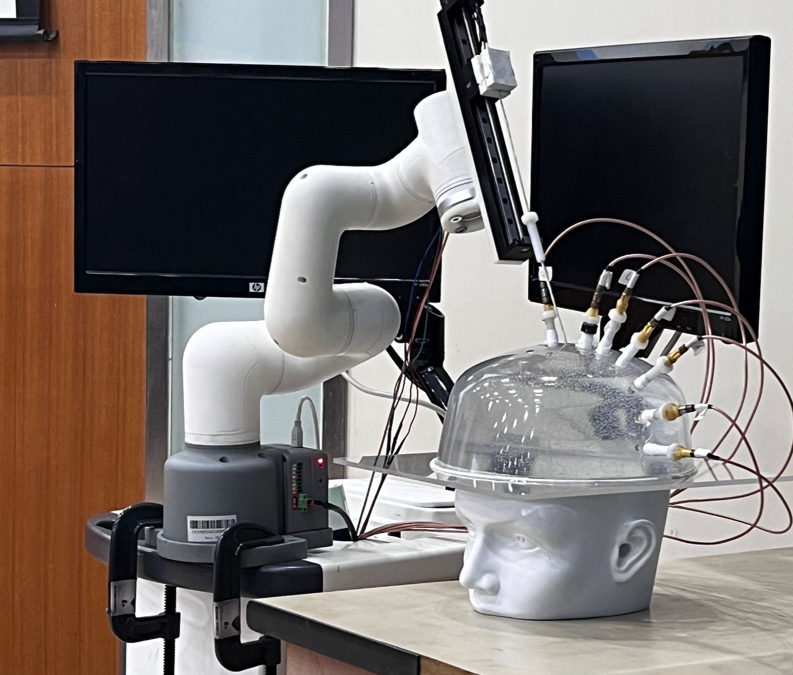 重庆大学科研团队同步展示了“3D电场导航深度脑刺激(DBS)电极植入手术机器人”、“超低场磁共振设备研制及梯度线圈设计”等多项前沿成果。