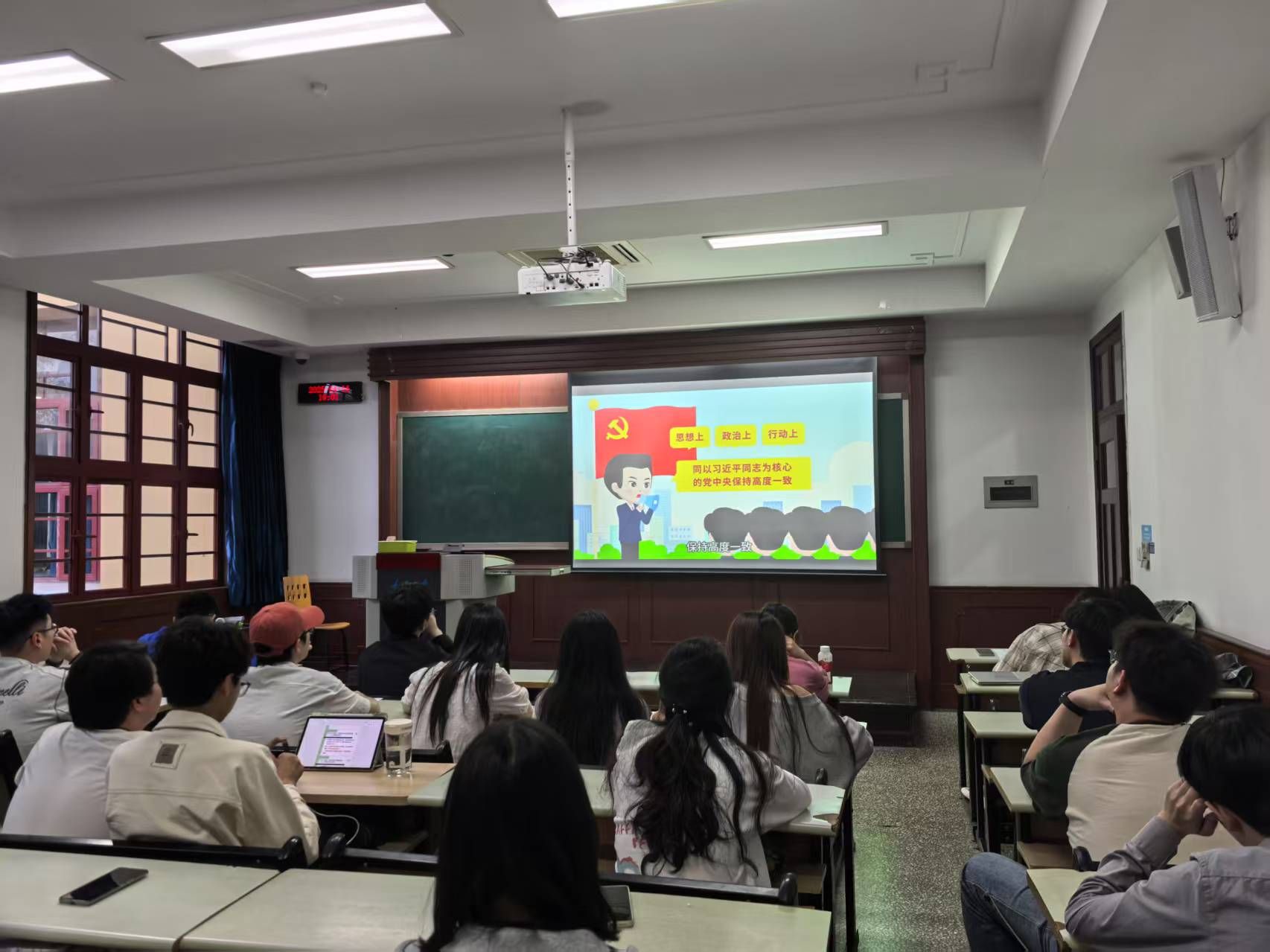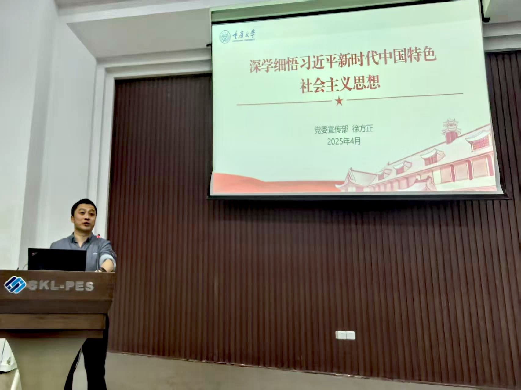4月10日晚,校党委宣传部副部长徐方正同志为学员们讲授“深学细悟习近平新时代中国特色社会主义思想”主题党课。徐老师以生动的案例、详实的数据,深入剖析新思想的核心要义、精神实质与丰富内涵。他结合时代发展脉络,阐述这一思想如何引领中国在复杂多变的国际环境中破浪前行。让学员们深刻认识到新思想的科学性与真理性,激励大家以新思想为指引,将个人理想融入国家发展大局,以青春之我、奋斗之我,在新时代新征程中勇担使命、砥砺前行,为民族复兴贡献智慧与力量。