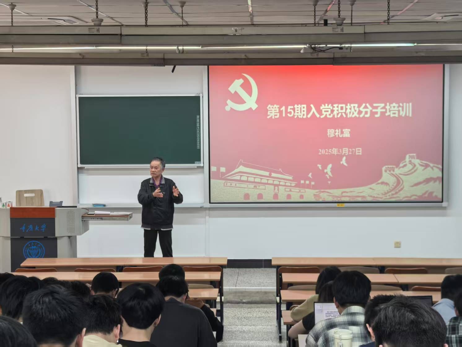 兼职组织员穆礼富同志为学员们讲授“发展党员工作流程及材料规范要求”主题党课。穆老师系统解读了发展党员的5个阶段25个步骤,重点梳理了《入党积极分子培养教育考察登记簿》《入党志愿书》等材料填写规范,并通过典型案例剖析常见问题。他表示,规范党员发展程序是确保党组织先进性的关键环节,同学们要强化流程意识与责任担当,争取早日成为党组织的合格新生力量。