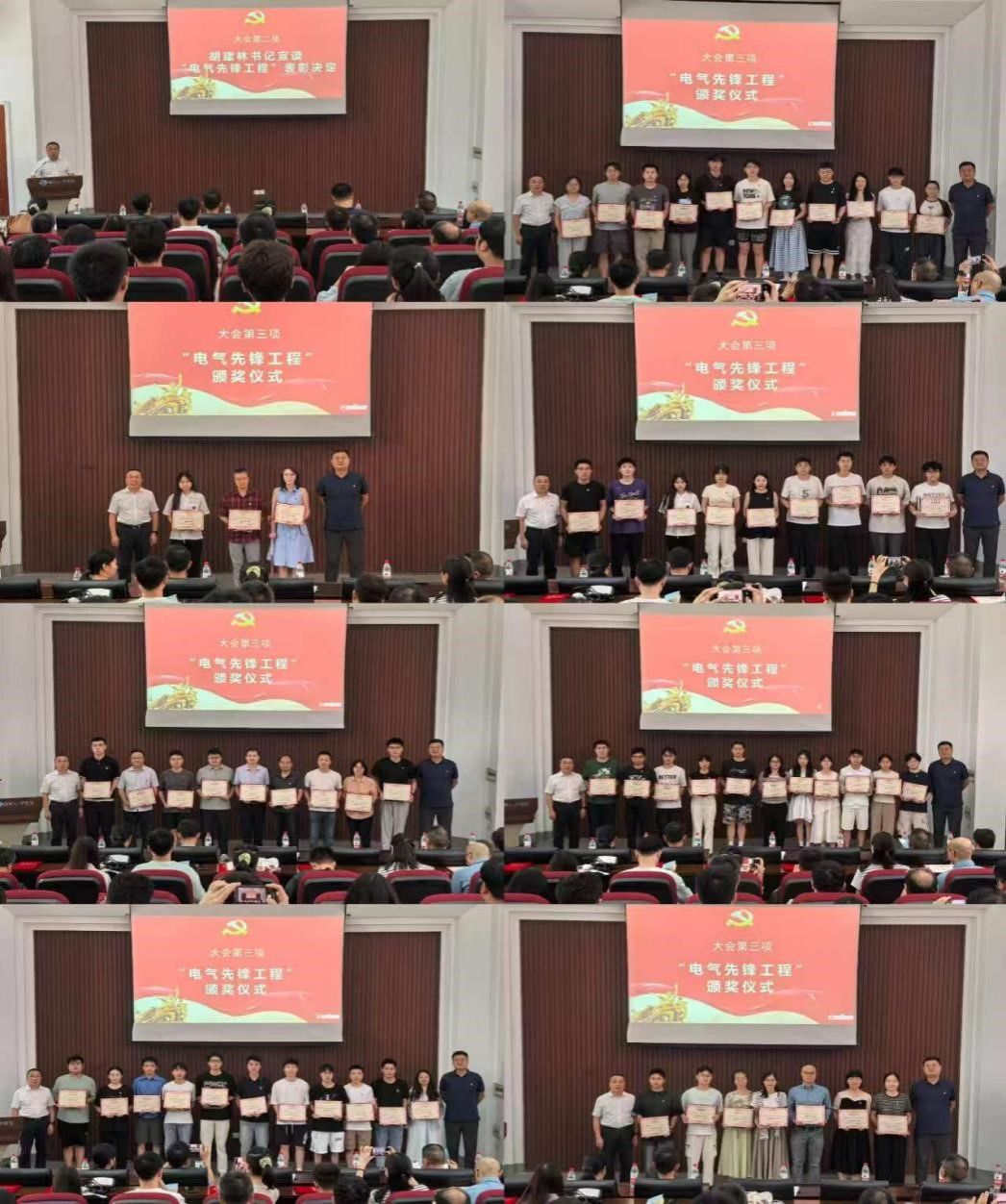隆重召开2024-2025学年度“电气先锋工程”表彰大会,3个先进党支部、55名优秀共产党员和7名优秀党务工作者获得表彰。