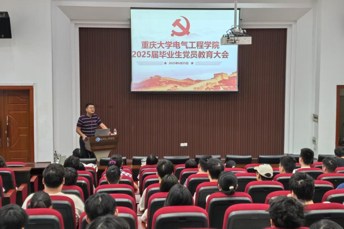 党委副书记吴嘉为2025届毕业生党员讲授专题党课。吴嘉带领毕业生党员重温了中国共产党人的初心使命,分享了电气先锋的故事,激励毕业生党员要把信仰作为前行的“指南针”,以榜样为力量,勇于担当作为,怀抱梦想、脚踏实地、致远未来。