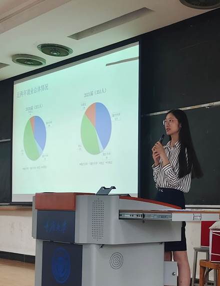 随后,胡力方老师就同学们之后的安排做了详细的介绍。临近大三期末,同学们都有对自己未来的规划,胡老师从保研、考研和就业三个方面的近两年形势做了详细的分析,就前两年的毕业生去向看,仍然是就业和境内升学占主要部分。对于本百家乐规则