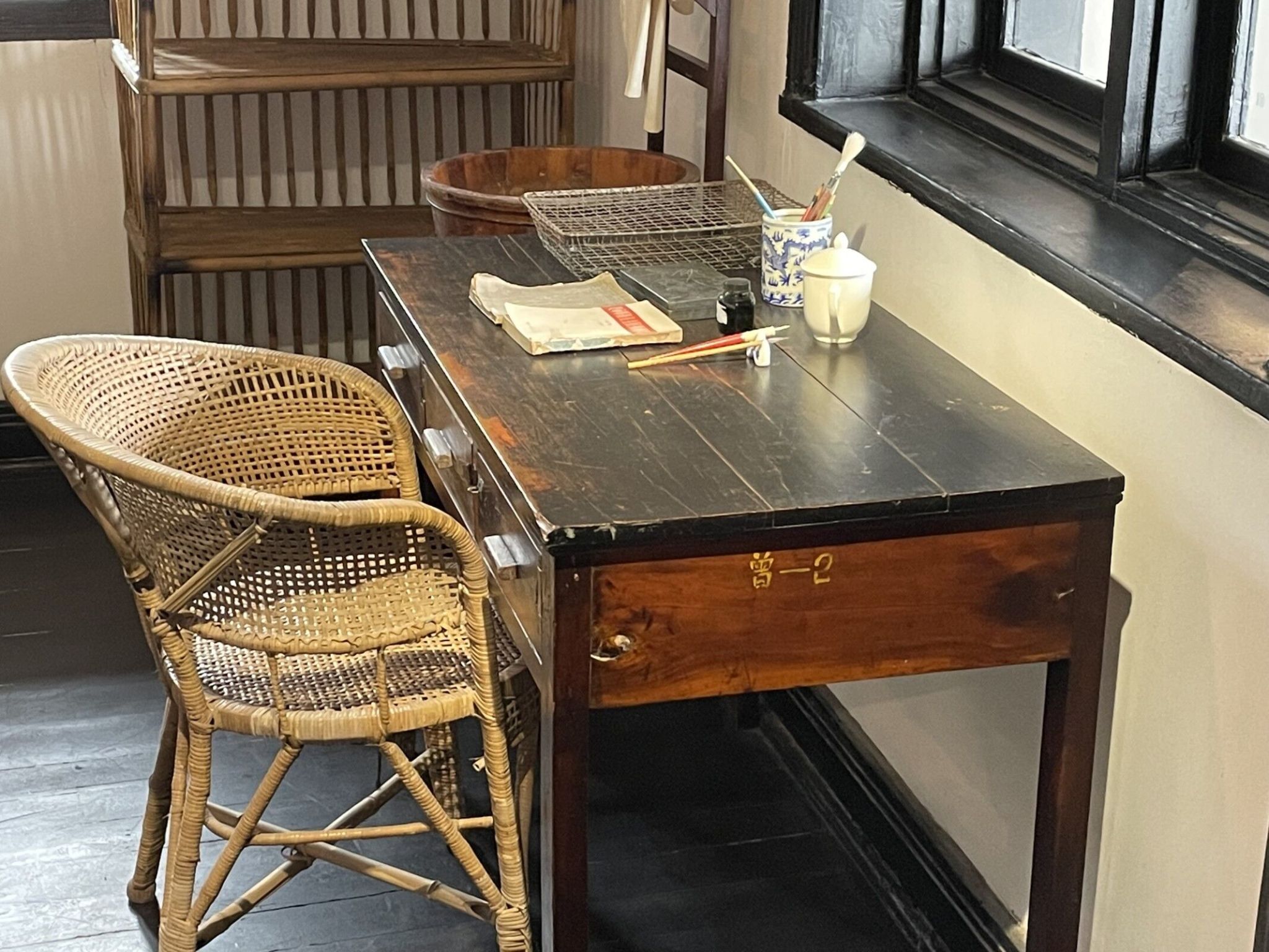小楼内有一小一大两个天井。前院天井的墙上悬挂着周恩来等中共中央南方局领导成员照片以及南方局组织机构图,这里是南方局的分部。在一楼的左侧是周恩来和邓颖超的办公室兼卧室,大致十几平方米。屋内一张床、两张桌子、两个书架、一张藤椅。阳光透过窗户洒落在桌前,屋内陈设简单、干净整洁,彰显了老一辈党员艰苦朴素的优良作风。